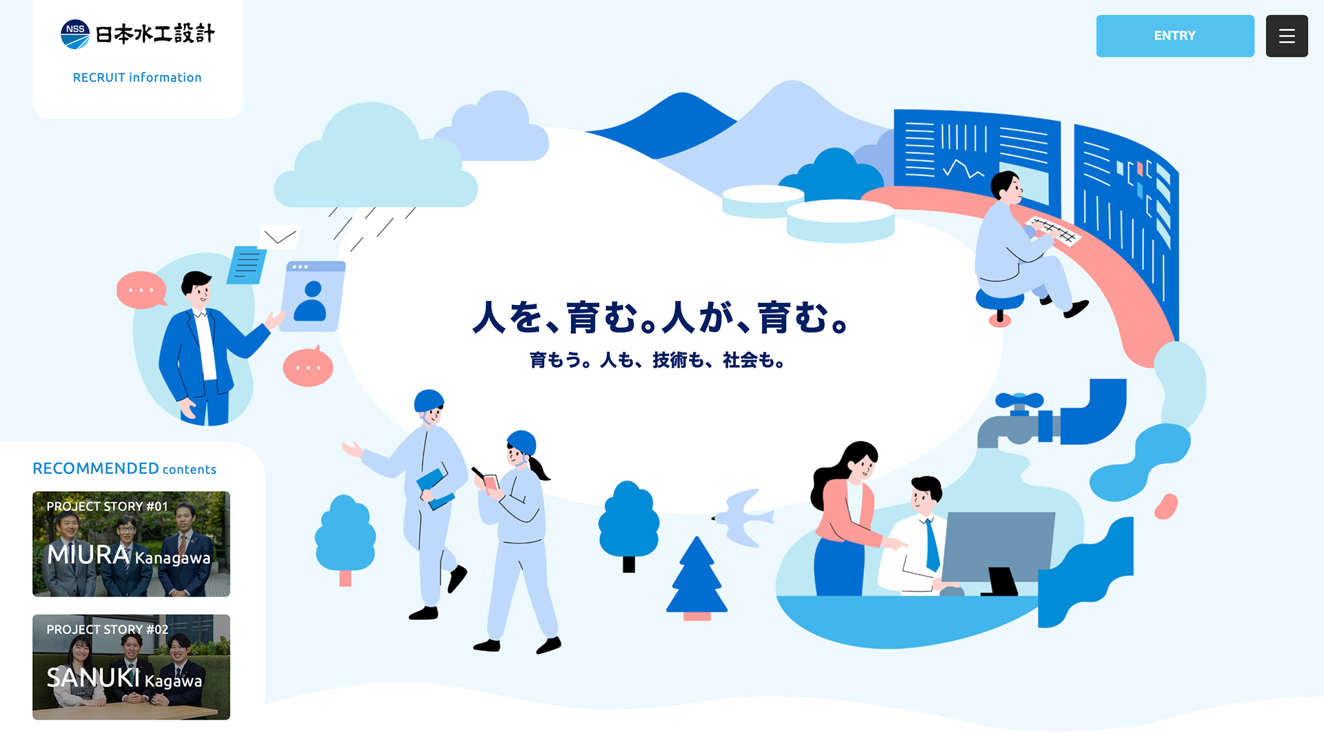 I created illustrations for the recruitment website of NIHON SUIKO SEKKEI Co., Ltd..
