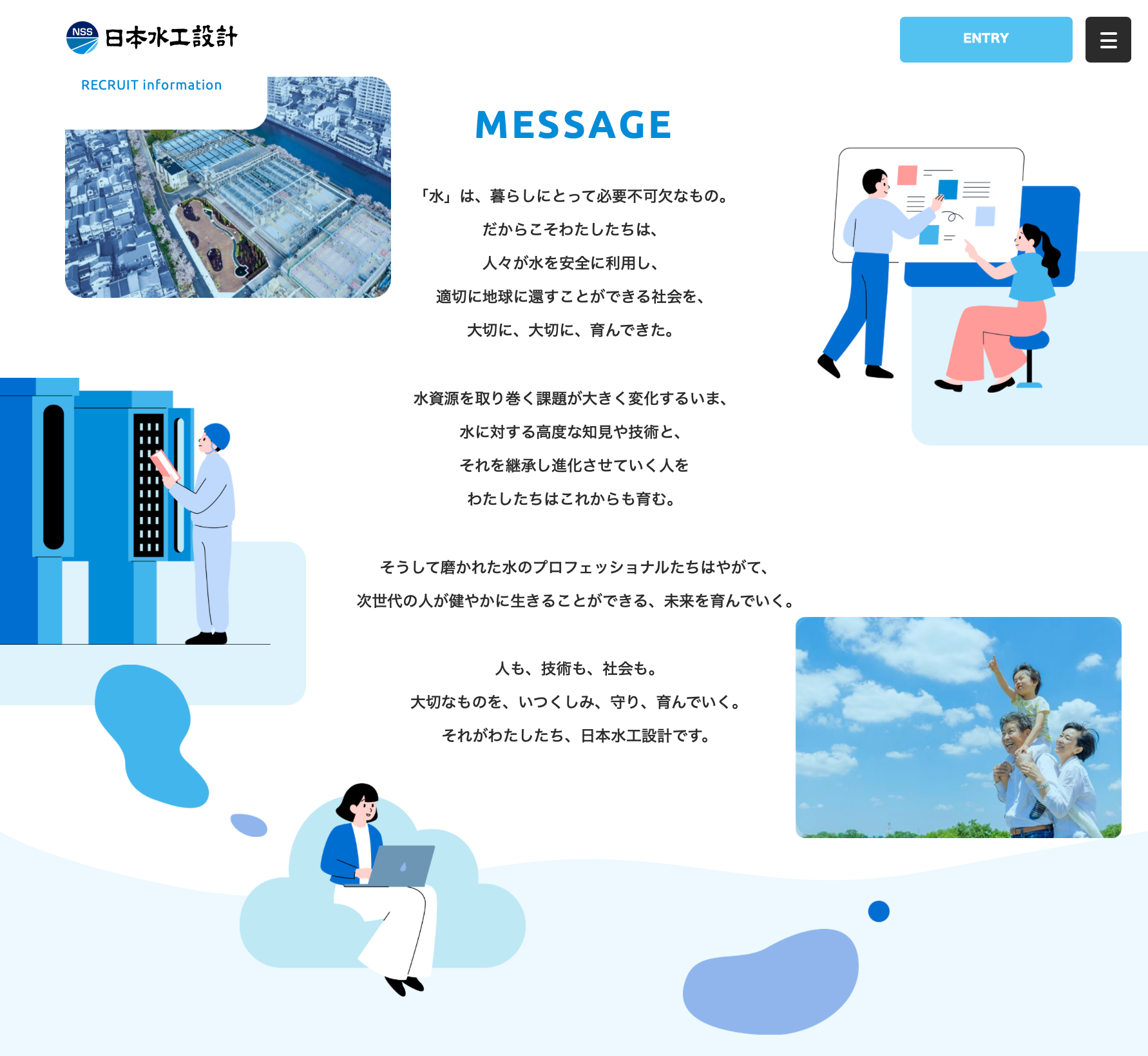 日本水工設計株式会社様の採用サイト用のイラストを制作いたしました。